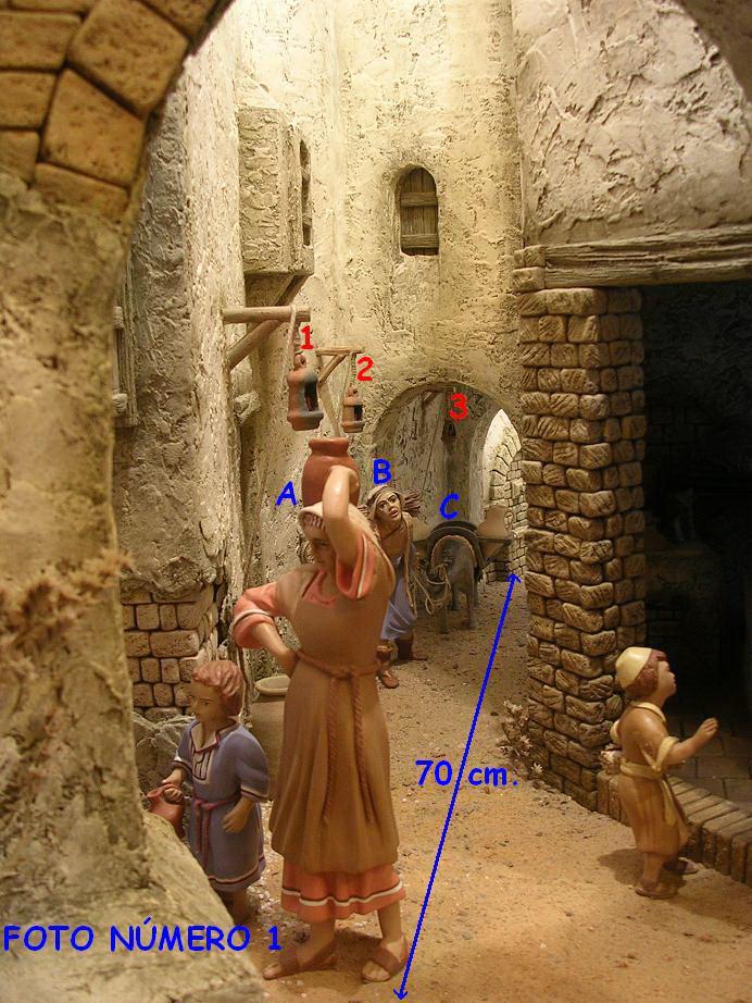 En mis belenes en algunas representaciones realizadas en un mismo plano utilizo la perspectiva forzada ya que, al utilizar figuras de 24 cm. para el primer plano y las dimensiones del Belén que son 160 cm. de ancho por 210 cm. de profundidad, me veo obligado a ello.