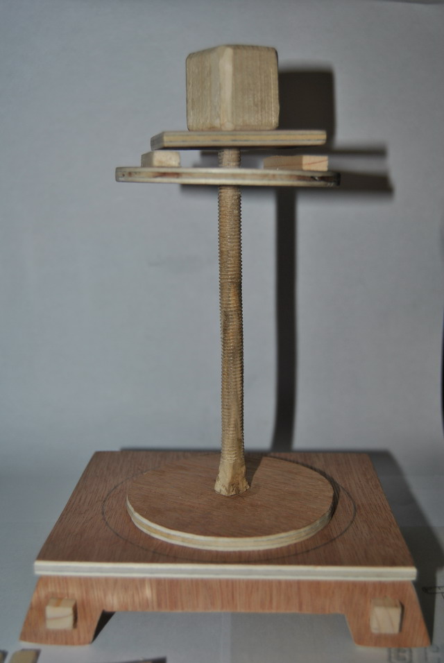 El Husillo ( el palo con tuerca ) es hecho con una cuchara de madera ( las que se usan en la cocina ) y tratada con una Terraja para hacerle la rosca.