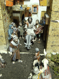 He olvidado que otras figuras son de José Joaquín Pérez (personajes de los que están eh Jesús ante Herodes y en el camino del Calvario con la cruz a cuestas, en el encuentro de Jesús con las mujeres de Jerusalen) y unas poquitas, la del grupo de mujeres asomadas a una tañia viendo entrar a Jesús sobre la borriquilla en Jerusalen, asi como un pastor con una abra descubreindose la cabeza en señal de respeto a Jesús, son de resina de Landi. Bueno en este mismo grupo hay dos niños que son de José Joaquín Pérez.