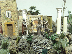 Por supuesto que todo trabajo que se realiza con respeto a la historia biblica ya merece un aplauso como yo te reconozco en el tuyo, espicula. Quisiera comentar ,a los foreros interesados en el tema, que desde octubre de 2007, en Calahorra (La Rioja) se puede visitar un espléndido montaje sobre la Pasión y, fijaros, en el artículo publicado en la prensa se le daba el nombre de "Monte Sacro". ¿Quién le puso este nombre? Tal vez sea el nombre que le den por tierras del autor: José Joaquín Pérez. Lo cierto que así se le llama en el entorno de la cofradía de la Santa Vera Cruz de Calahorra. El trabajo en cuestión bien merece una visita de los que os encontréis por esta zona. Si queréis visitarlo se encuentra ubicado en el Museo de Pasos de Semana Santa que hay en la Iglesia de San Francisco. Son 70 figuras de José Joaquín con la particularidad que son únicas en su diseño, así rezaba el artículo en prensa y que tienen una exclusividad de 300-400 km. Quiere esto decir que, José Joaquín se comprometió a no realizar otro montaje similar dentro de este radio de acción. Creo que hay otro en Santander. Se puede visitar todos los sábados y domingos entre las 11,30 y 14 horas.