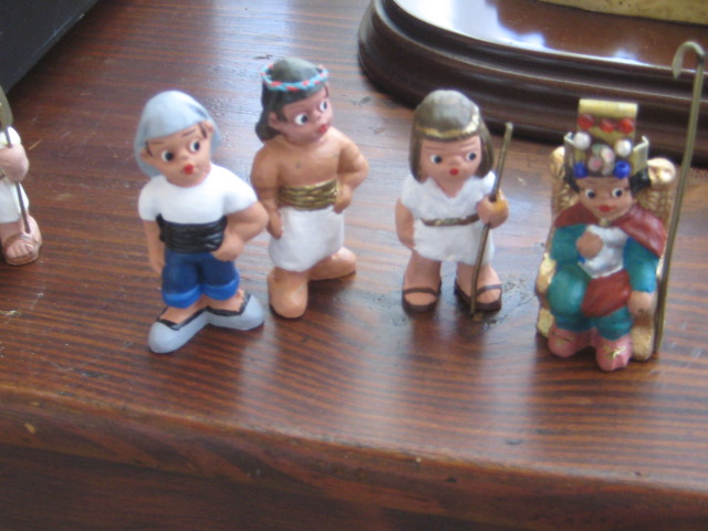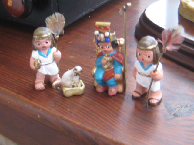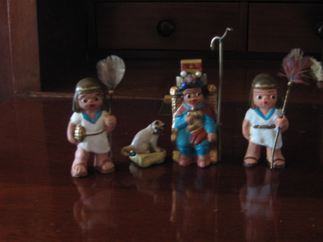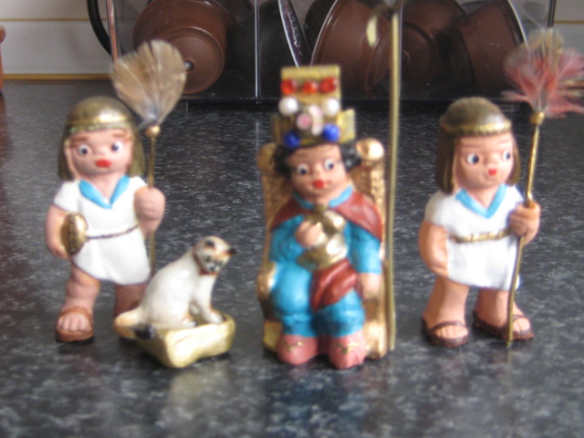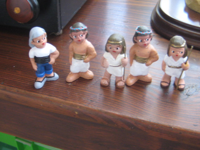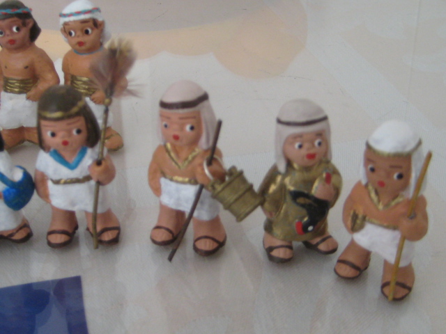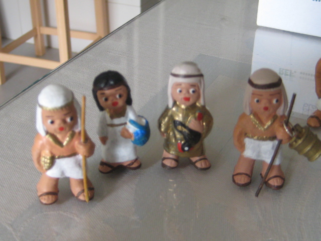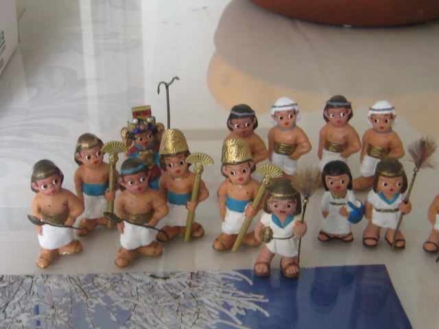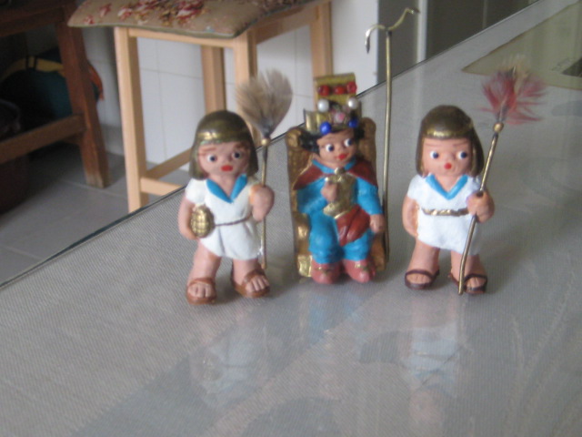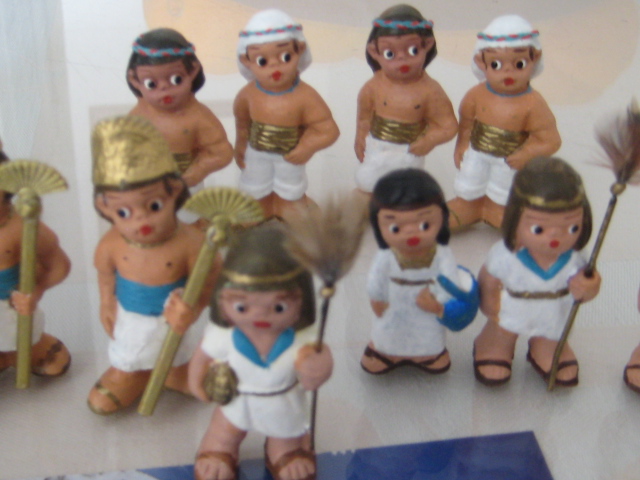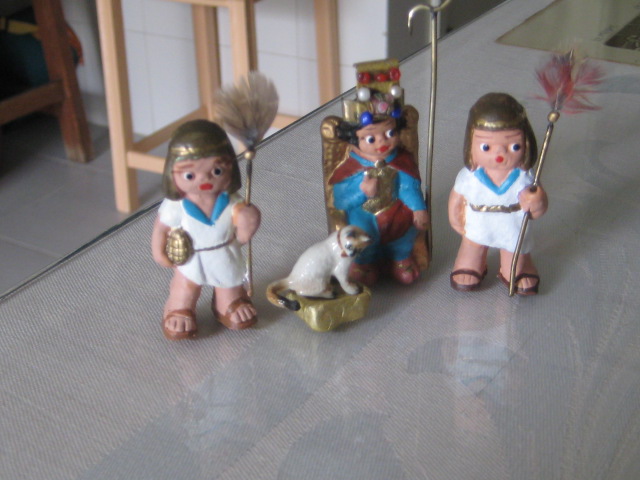 el tema de los egipcios, es de todos sabido, que es muy complicado,ya que no existen figuras, pues me ha lanzado,y os permito sonrisas, ya que algunas en el cambio estan graciosisimas,la primera foto es herodes en su trono transformada en "mi faraona",luego vienen los chicos, que han salido todos de unos costaleritos que he encontrado, las niñas son unas pastorcillas hebreas que iban vestidas cortitas y por ultimo "mis terrorificas momias",algunos son los moldes interiores de unos sarcofagos que tenemos, lluvia y toniato (que yo sepa), he tenido que hacer esto, ya que el autentico resulta un poco desproporcionado para mis figuras, al final no se que hare y la ultima momia es la primera que hice con porex, y una venda liada, jajajaja esta graciosisima. Mis figuras miden 3centimetros y medio. Espero que os gusten,ire poniendo aqui mis avances con respecto al personal ya que las construcciones vendran mas tarde.