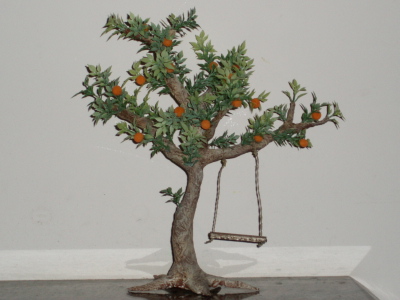 Recomiendo antes de hacer el arbol buscar una foto de un naranjo u olivo, según sea el caso para copiar la disposición de las ramas y conseguir mayor realismo. Eso es algo que yo no he hecho, a la vista está.
