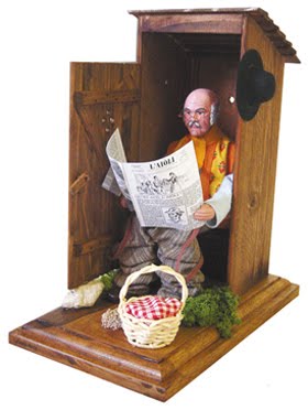 Yo creo que la idea inicial, con el cagadou en una letrina, leyendo el periódico, etc., está bien, y completa el ya muy completo muestrario de "santons". Pero me gusta en la medida que es una oferta diferente y no mimética del "caganer" catalán, que se ha convertido en una de las lacras de las navidades por su omnipresencia, reiteración y escasísima calidad.