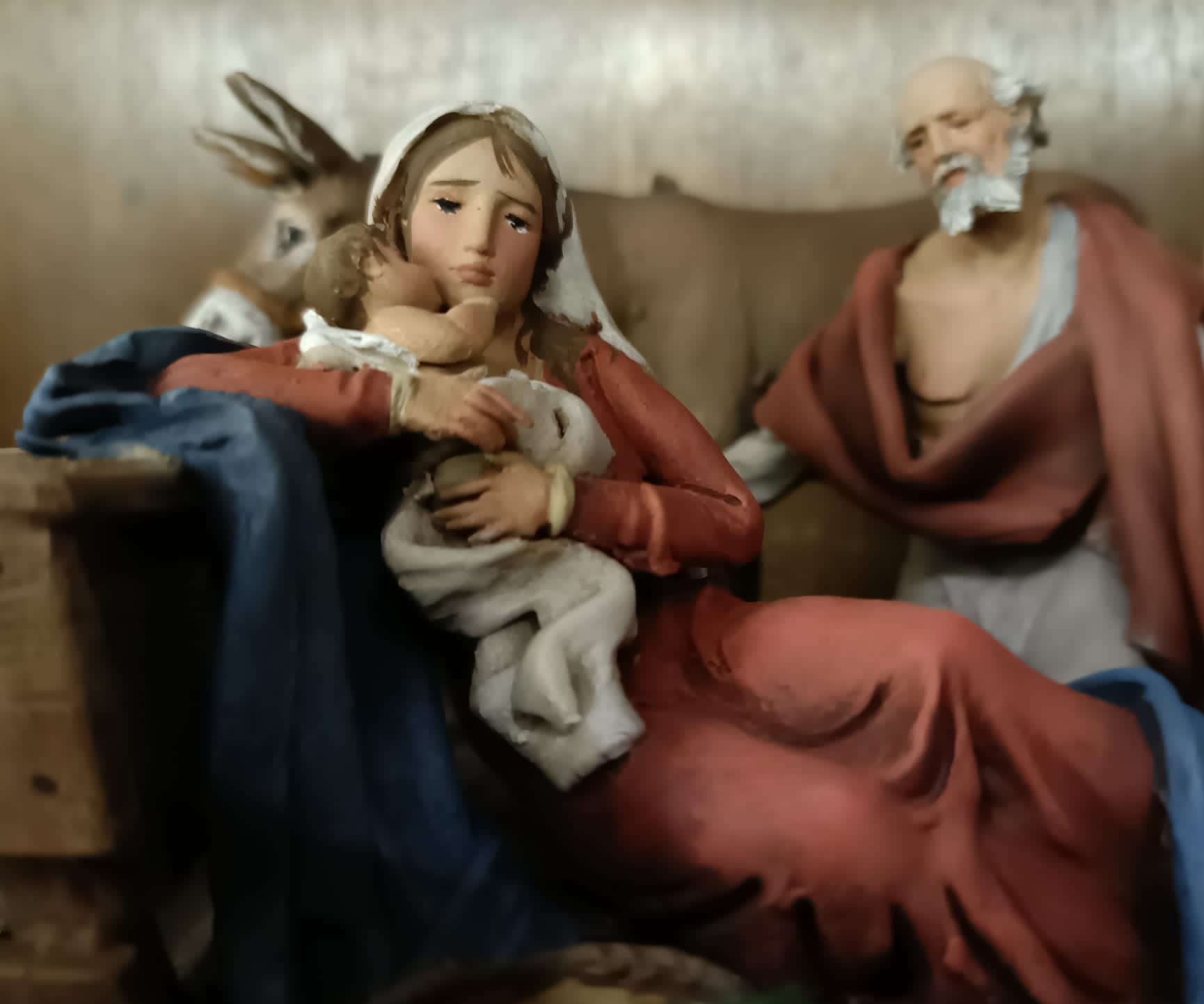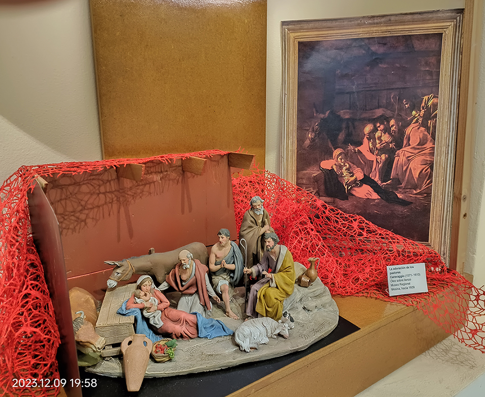 IMG-20231112-WA0000.jpg (79KB - 122 descargas)Ya en casa la última y 'aventurada' adquisición del taller, el decanso en la huida a Egipto de Caravaggio , no hace falta decir que me encanta su estilo(del taller, Padre e hijo), expresiones, modelado, colores y viveza...directa mañana al montaje en la hornacina de la Iglesia del Pilar acompañando a la adoración de los pastores.