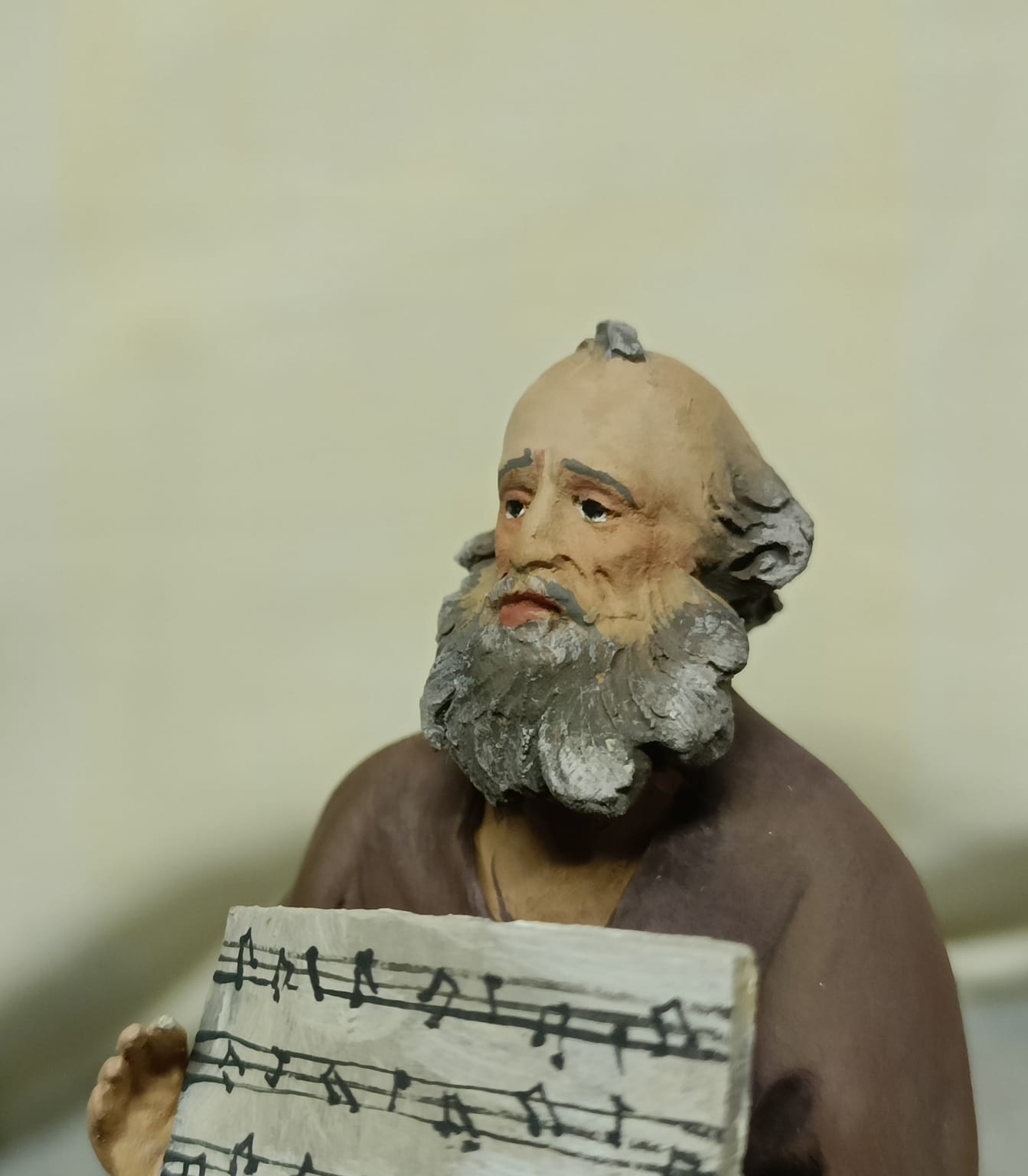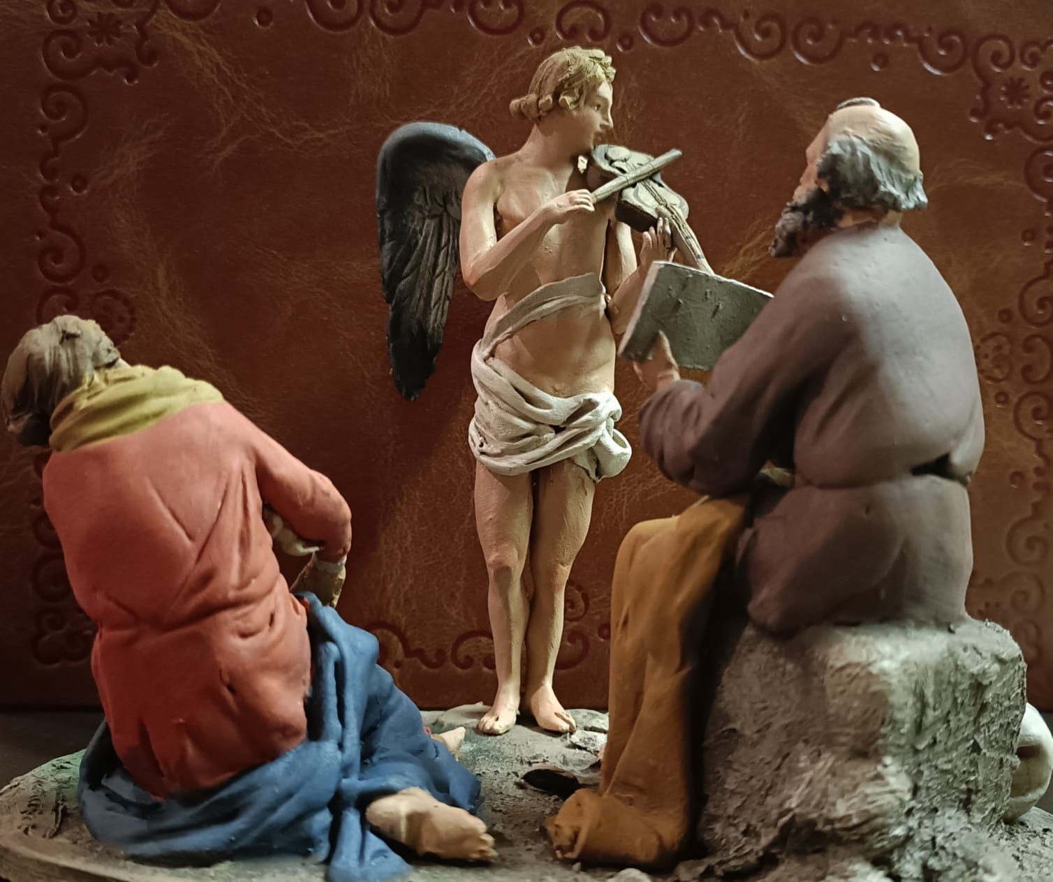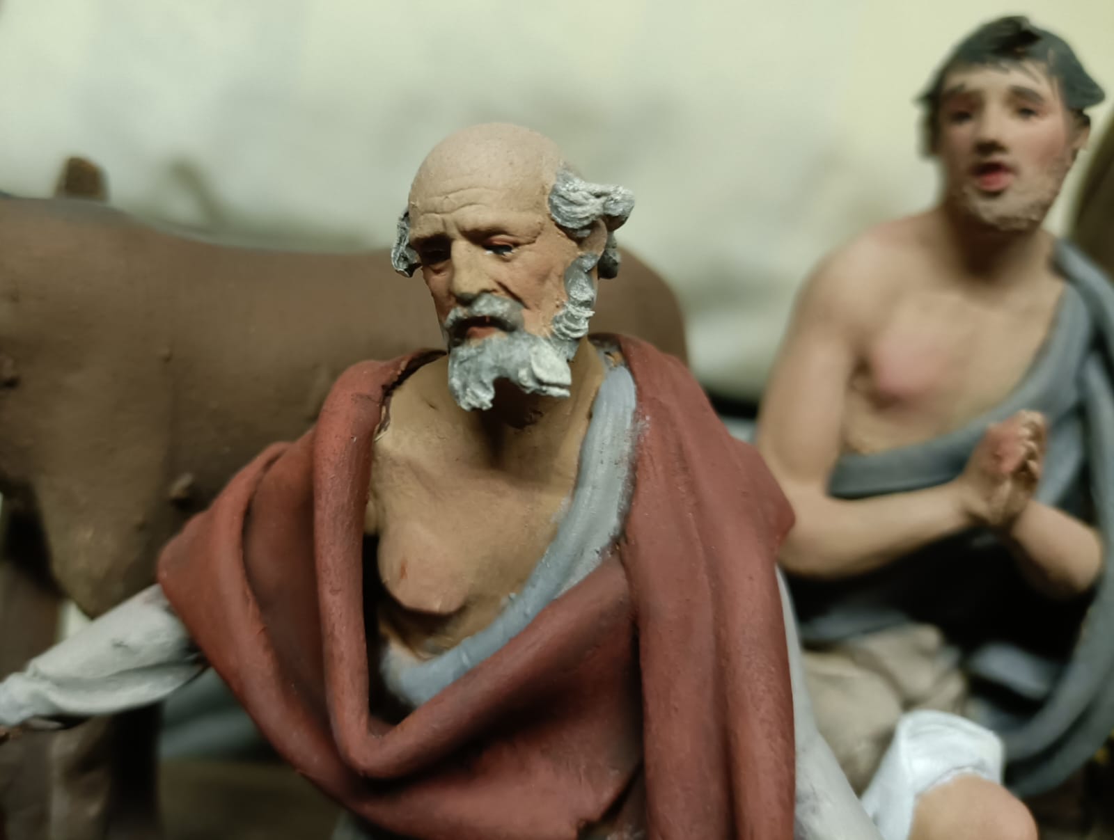 Reconozco que este encargo al recogerlo me sorprendió, y al mismo tiempo no lo hizo. En mi opinión, representa lo mejor del estilo de trabajo del taller, logrando una interpretación que se mantiene fiel al dramatismo del cuadro de Caravaggio sin perder su sello propio. La pieza equilibra magistralmente la esencia barroca y la identidad artística de Salvatore, lo cual la convierte en una obra única dentro del belenismo.