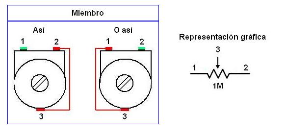 Usted, ha entendido muy bien. El polo relativo al cursor, caracterizado con el número 3, debe ser conectado indiferentemente a uno de los dos polos de la resistencia, caracterizado por los números 1 y 2, justo como evidenciado por la línea roja.