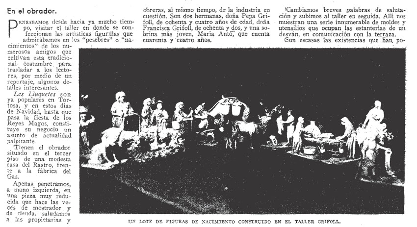 Lluquet era el malnom del mestre de cases Josep Jacint Grifoll i Castells, nascut a Tortosa el 5 de setembre de 1826, primer fill d'un mestre de cases de Montroig, el qual havia arribat a Tortosa uns anys abans. La seva dedicació a les figuretes del pessebre arrenca d'una trobada casual, sent ja casat, en un artesà italià que venia pels carrers de Tortosa imatges de guix, de forma ambulant.