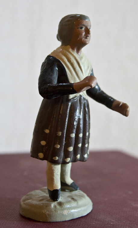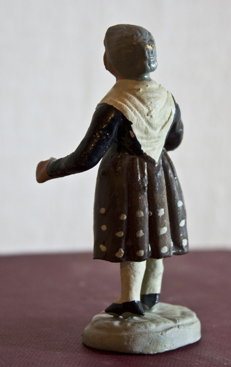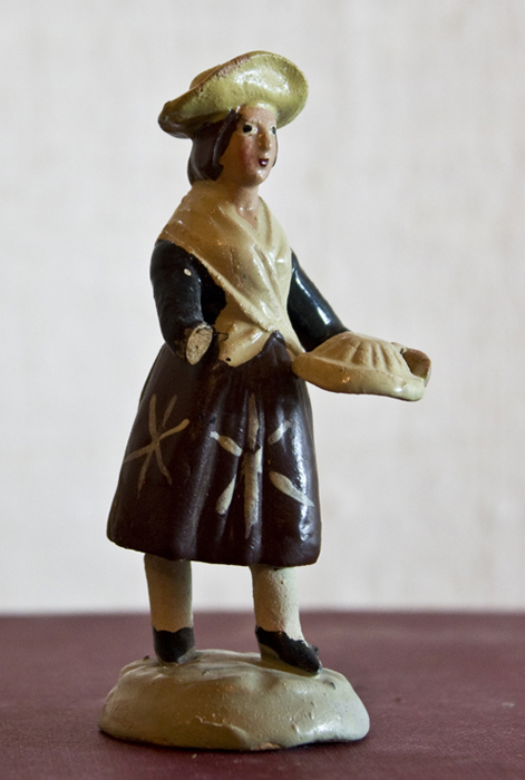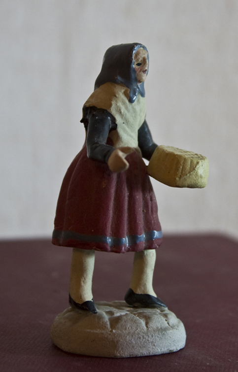 - dona que fila tot caminant, envoltada de dos galls, tres gallines i tres galls d'indi (10-15 cm d'alçada)