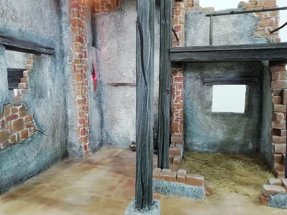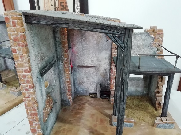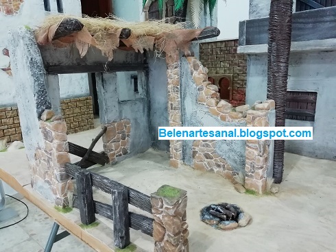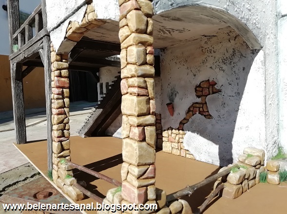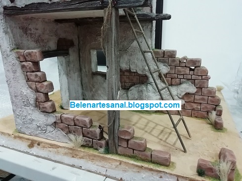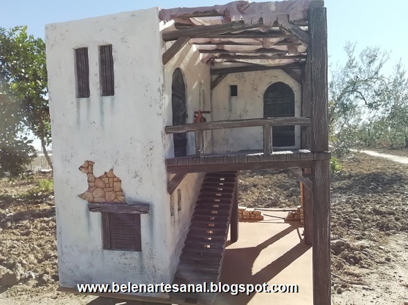 Nuevo "caserío" para el Belén, casa de 2 plantas con escaleras de madera y parte inferior con pesebre.
