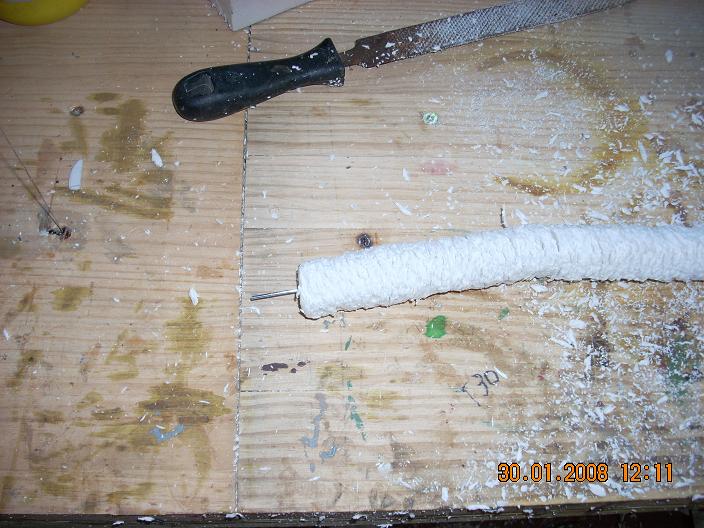 Nuevos Arboles 066.jpg (110KB - 277 descargas)Hola Lilo.- El alambre es algo complicado, pero con paciencia lo consigues.- Debe ser lo mas grueso que puedas, tres milimetros mas o menos, pero depende del grosor del tronco.- Corta el alambre en sesgo por las dos caras, o sea por la misma punta dos cortes en sesgo a cada lado y lo metes con la ayuda de un alicate dandole vueltas como si fuera un tronillo, asi no se embota . En c aso de que mno puedas por el mismo lado, vas al otro y lo metes lo que falte, pero es interresante este toda ella pasada por alambre para asi poder manejarla mejor, en cuanto a consistencia del tronco como a que le puedas dar forma sin romperse.-