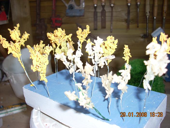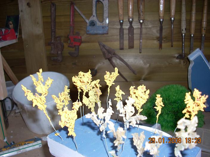Referente a la pintura, eso ya a tu gusto el tono de verde; yo las pinto todas del mismo tono de vede y luego cuando ya las tenga todas montadas les daré un pistoletazo de pintura aclarando el tono y dándoles a cada una un tono diferente-
