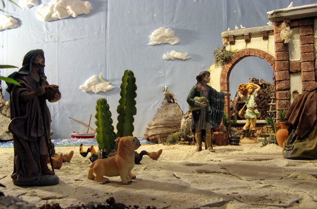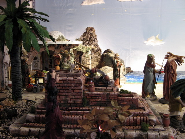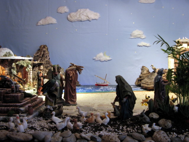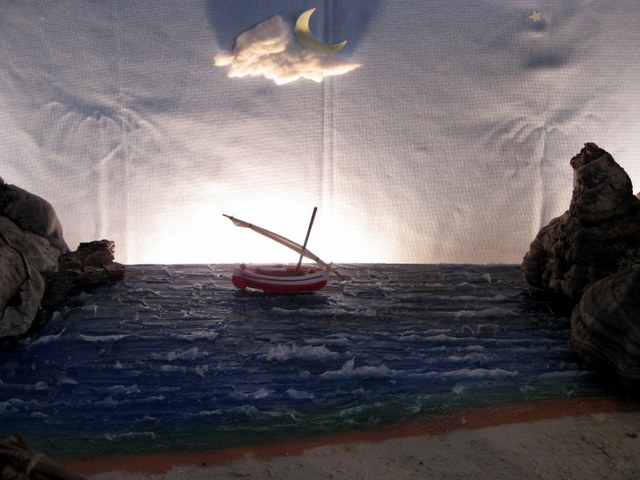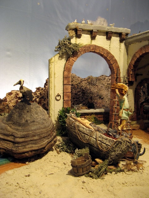 Este año esta inspirado en un ambiente de pescadores, y así he colocado mi portal al lado de una playa con el mar al fondo.