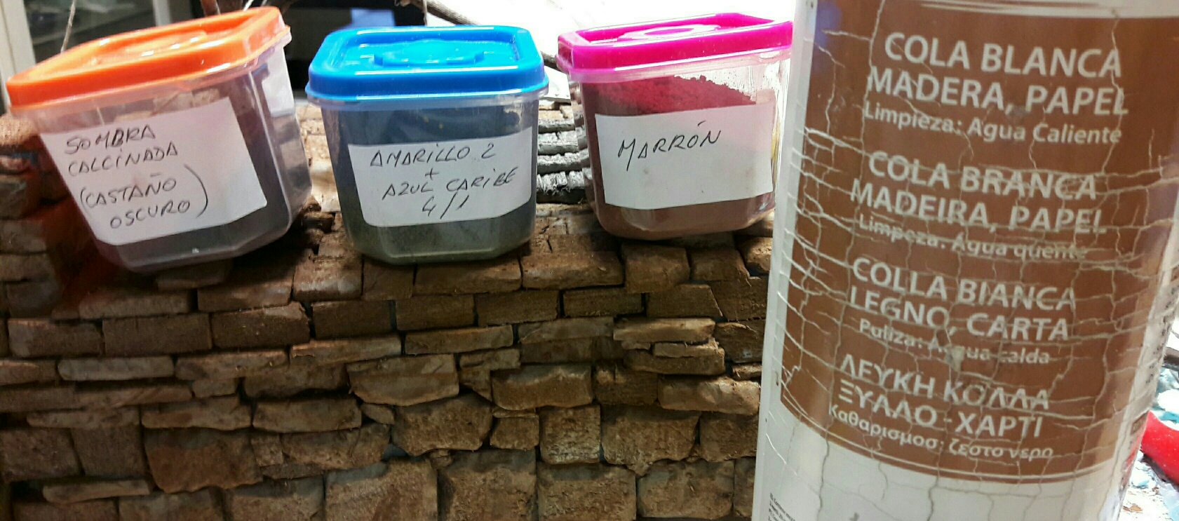 Una vez seco todo lo pinto con pigmentos sintéticos, con agua y cola de carpintero como aglutinante. Aplico tonos más oscuros en las oquedades y luego más claros para ir obteniendo luces y por último matizo y fundo todos los colores.