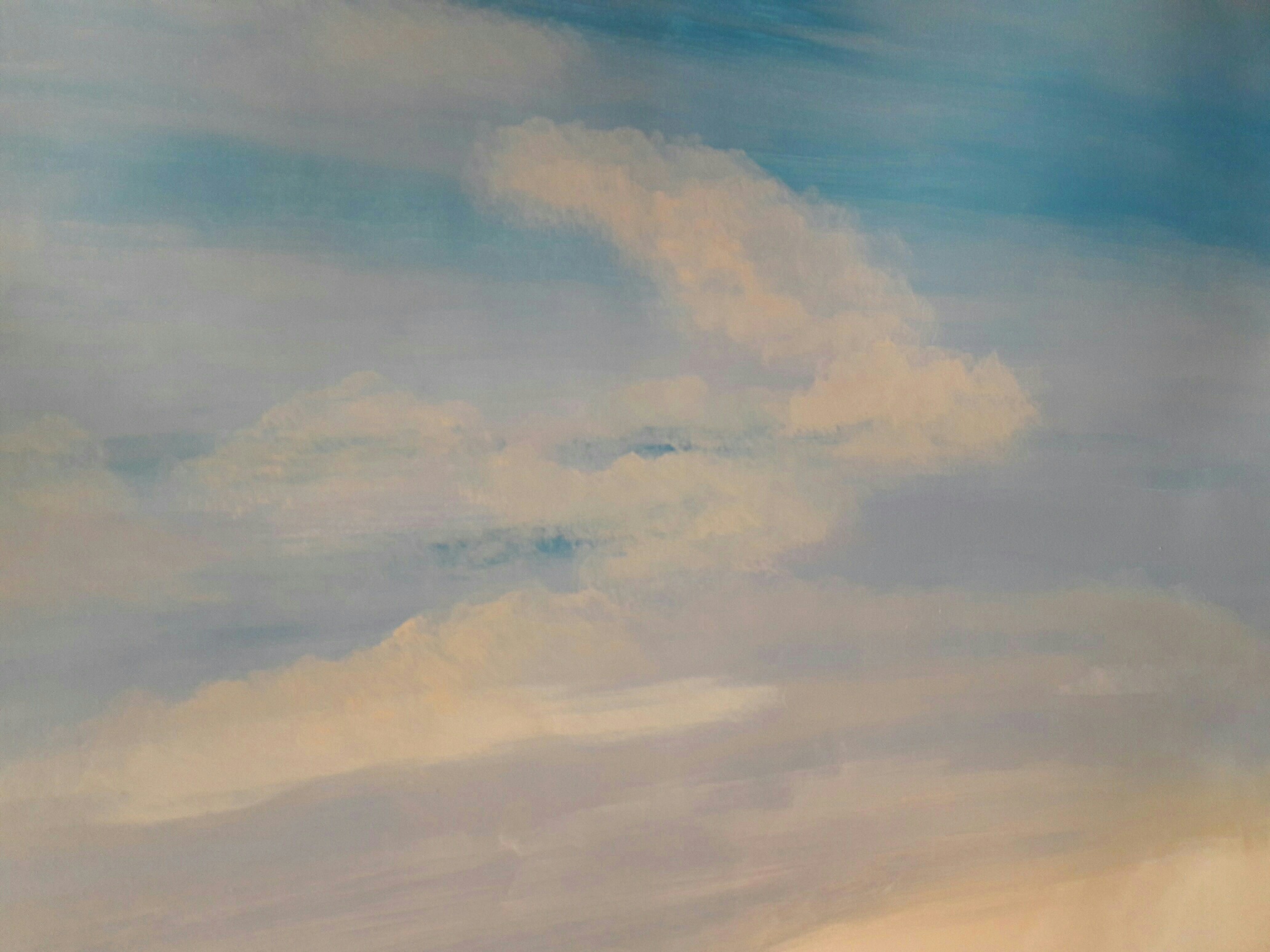 Lo pinto con los mismos pigmentos que mencioné antes, primero un fondo oscuro y luego sucesivas capas con pincel seco en tonos cada vez más claros, por último, matizo y fundo con acuarelas.