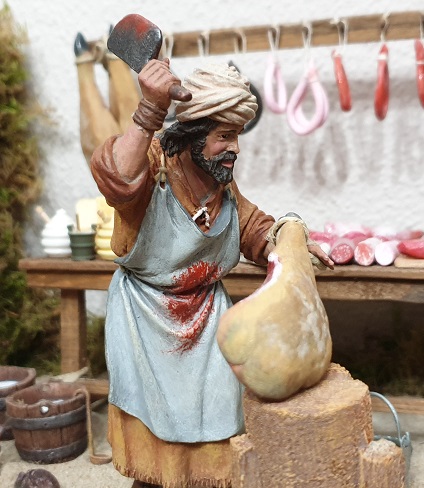 - Carnicero de Alcántara en 12 cm, con puesto de carnicería, 150 €