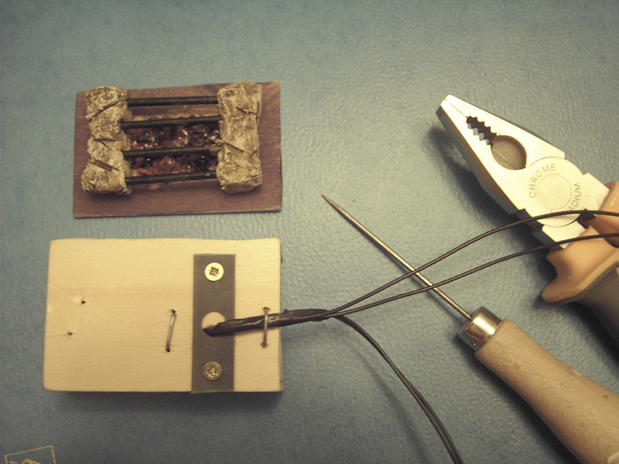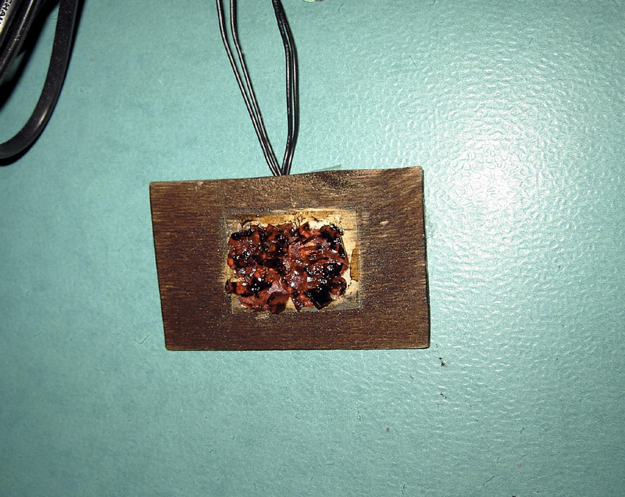 Después la pegaremos too con cola blanca a la lámina de madera donde están las brasas.
