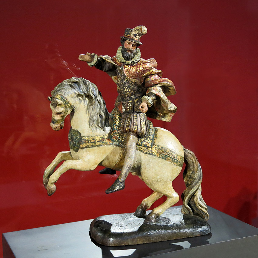 Reyes, heraldos y pajes realizados en madera de cedro con una notable policromía de punzonados, esgrafiados en oro y hasta aplicación de pequeños cristales sobre los ropajes, nos permiten imaginar una mayor riqueza en algunas piezas, que debieron tener arreos de caballería perdidos en su mayoría.