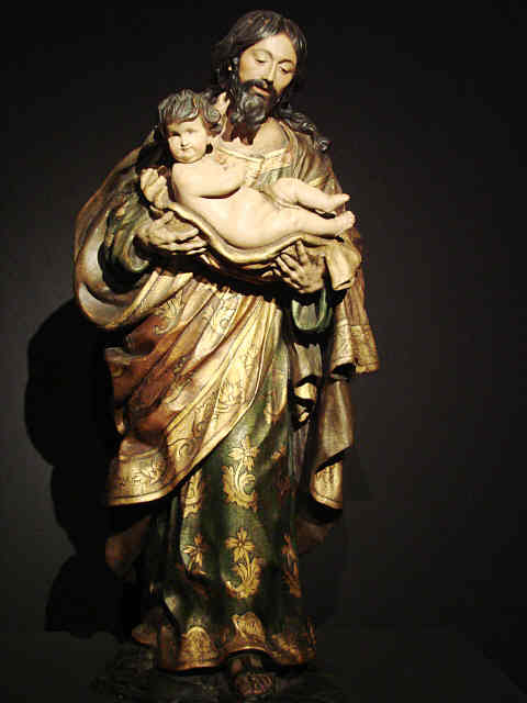 La que más nos atrajo, cómo no, fue su versión del Descanso en la Huida a Egipto , una composición muy centrada en la Virgen con el Niño plácidamente dormido, mientras San José aparece difuminado al fondo, a la izquierda, también en reposo. Son evidentes las influencias del gran Rafael, y no pude evitar acordarme del Niño del conjunto de Lino Felix y, sobre todo, de ciertas coincidencias con el de La Roldana.