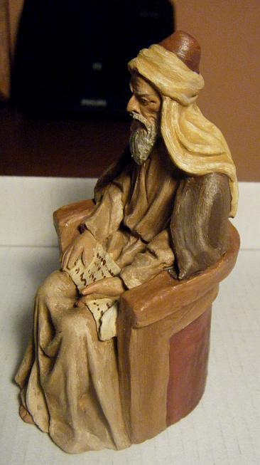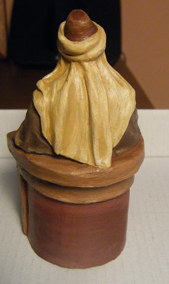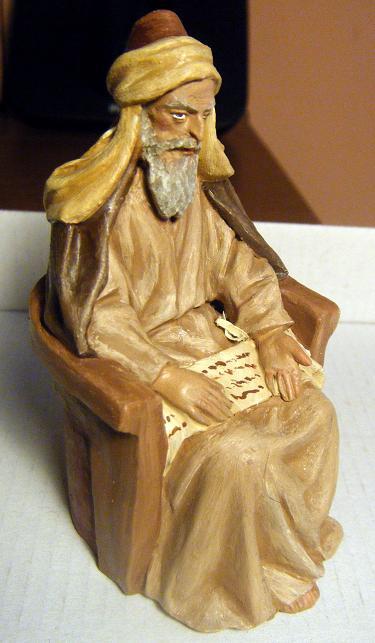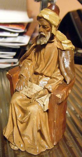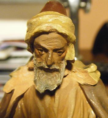 Esta figura es como dicen por aqui " DE FIL DE VINT" (de hilo del veinte, el de mejor calidad que se fabricaba, solo digno de la real fabrica de paños) es super expresiva de cara, la imagino en el atrio de un templo flanqueado por dos columnas. El detalle de la escritura es genial solo falta que lo que este escrito tenga significado.