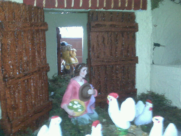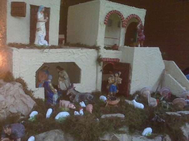 Hola compatriota...me gusto tu belén .Bueno aqui se le dice Nacimiento.Me gustaria saber la dimension porque se ve grande .Te puedo decir con todo respeto que las figuras estan buenisimas pero lo que debes tener en cuenta es la proporcion..lo digo por las gallinas y pavos creo...si tengo uno de ese tamaño...me privo...osea la escala es superior a tus lindas figuras..sin ofender..Te felicito por tu Belen..luego te mostrare el mio...tambien soy nueva en esto de belenes pero cada vez me enamoro de este "arte" saludos desde Caracas.-