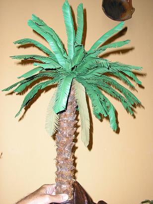 Muchas gracias a todos por darme muchos ánimos. El tronco lo hize como está en el foro, con las pencas de la piña de los pinos, y muuuucha paciencia. Para rellenar los huecos y darle un poco más de realismo, le puse corteza que se forma dentro de las hojas de palmeras pegada al tronco, que se utiliza para hacer las jardineras. Y se queda como una palmera de verdad. La pencas de las piñas estan pegadas sobre una caña. Me gusta más las cañas que los tubos que he visto en el foro, ya que hay de distinto grosor y con una sola caña larga puedo sacar tres o cuatro troncos. Muchas gracias, pero si soy novatillo en hacer cosillas para el belen, hace un par de años que lo hago con figuras que les hago la vestimenta tradicional de las islas canarias con arcilla para modelar. Pero es la primera vez que hago palmeras. No está terminada porque le tengo que hacer las támbaras (dátiles) y he estado mirando en los foros y me gusta la idea con los granos de arroz. Cuando la tenga terminada la pondré en el foro. Voy hacer un palmeral típico de aquí ( haré unas 20 palmeras), a ver como se me queda.