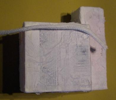 2 Damos una capa de cartapesta ( en este caso lo hago así porque las cajitas están plastificadas ) pero podemos pegar directamente el cordón y “cartapestear “ , (acá no use yeso ni enduido porque no tenía pero es mejor usarlo, ya deja las paredes bien blancas y con una textura más linda )