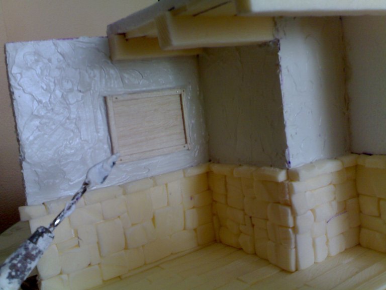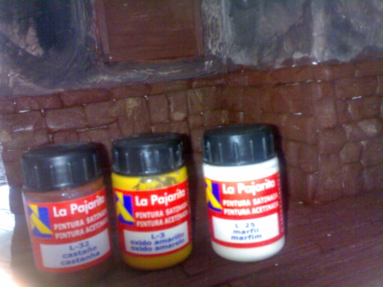 Las tres primeras foto, se puede ver la base que lleva la casa es un gris oscuro meclado con un poco de marron segun que zonas y un poco mas oscuro en otras, no me gusta dar un único color de base, creo que queda mas real darle varios tonos de base.