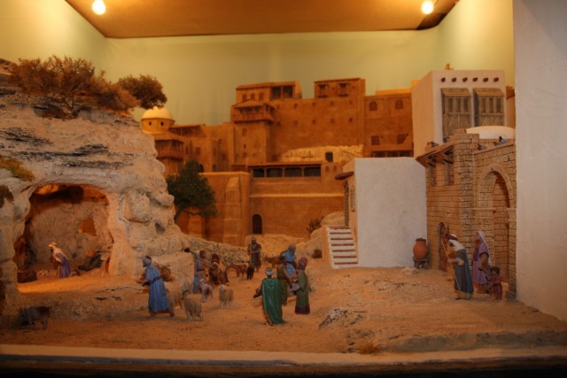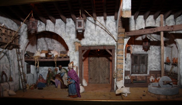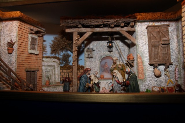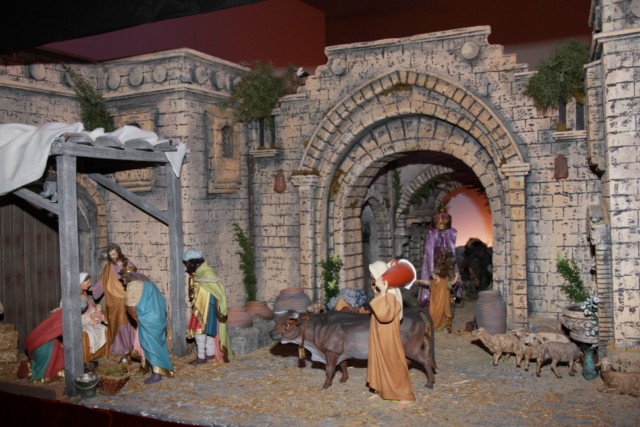Como compensación, tuve la oportunidad de conocer a Enrique , en el Museo del Belén de Jerez, que me reconoció deambulando por él. Y se lo agradezco mucho, pues mi fuerte no es ser fisonomista. Y desde aquí agradezco su amabilidad y el buen trato recibido. Aunque corto, como todos los contactos de un Congreso, fue intenso e interesante. Con el vimos con detalle la tecnología, poco conocida en madrid, del pintado directamente sobre poliestireno extruido, para simular montañas en sustitución de corcho, que ya había expuesto en el Foro, pero que allí vimos en directo.
