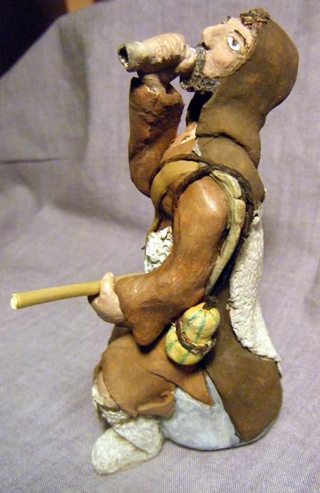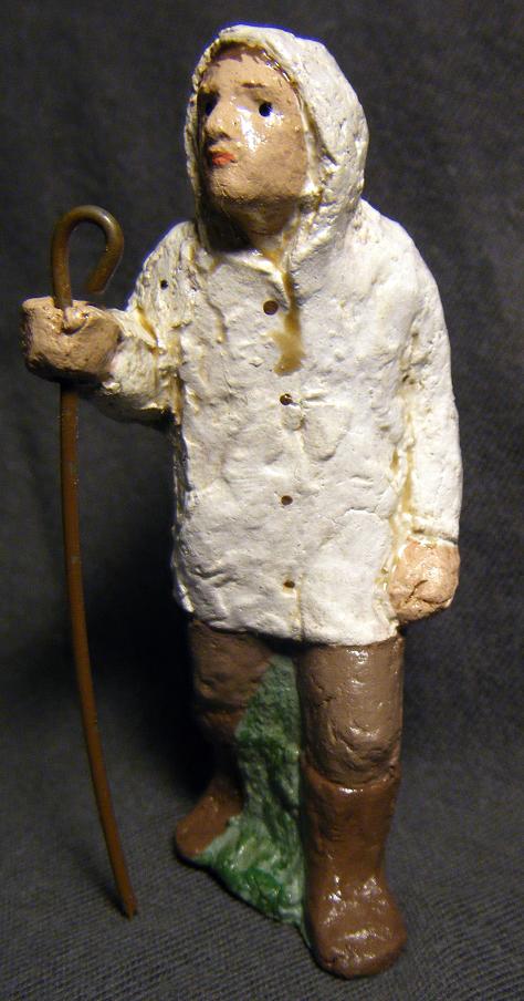La tienda se encuentra normalmente abarrotada de público y en ella pude encontrar... claro... Silvanos aveyron/lozereses, es decir, estatuas de terracota de pastores típicos de ambas regiones, peculiarmente montañosas y aisladas. Llevan la capa característica del pastor francés (el "berger Mistral" lleva una idéntica pero arremolinada al viento) y boina al estilo txapela.En la que se ve de perfil, el trasero se ve abultado porque lleva la "bolsa de pastor". El autor, un escultor francés llamado Marc Pont, de Saint Maurice de Navacelles (Herault)