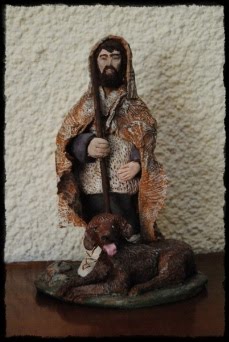 Además de los silvanos de terracota, tenían unas preciosas "bolsas del pastor", en cuero y las típicas capas, con cuyos retales "visten" los pastores de cuero (que tb me compré). El silvano de terracota hace unos 20 cm, es de terracota maciza y ha costado 46 euros (excelente precio) , el silvano de cuero/lana, unos 9 cm y 9 euros, todo ello barata para la muy cara Francia. Os pongo fotos de una de las capas de pastor que había en la tienda y enlaces hacia las capas y bolsas de cuero