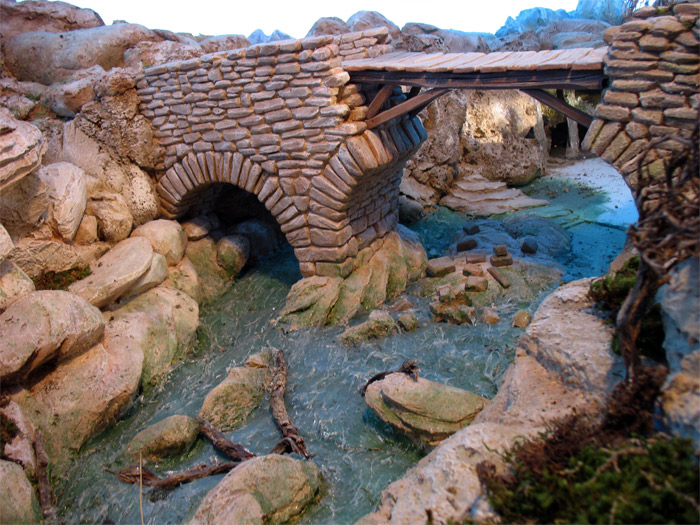 Te pongo un belén del año pasado simulando una corriente en un rio de alta montaña .