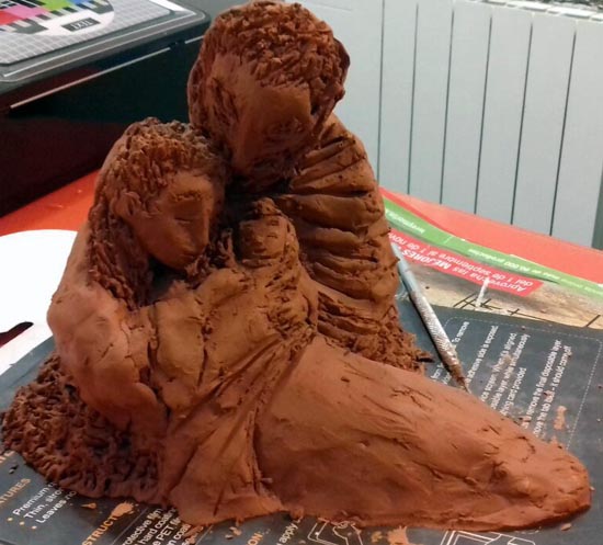 Me gusta la disposición de las figuras y qué quieres que te diga...tienen encanto en cuanto a la ternura que los tres se muestran. La realización la mejorarás a base de currártelo, como en todo en la vida. Persevera y se verán tus avances. ¡ Ánimo ¡.