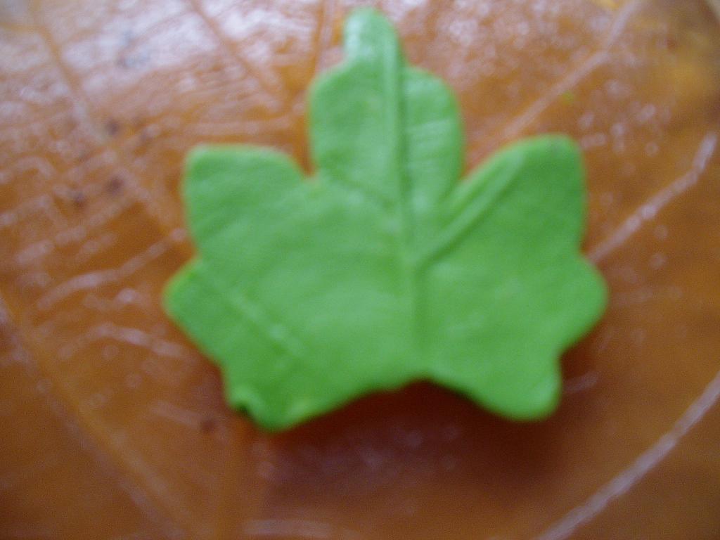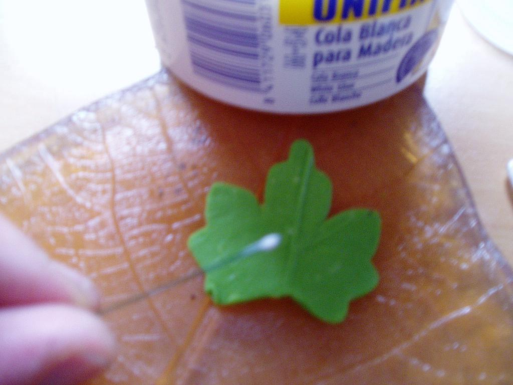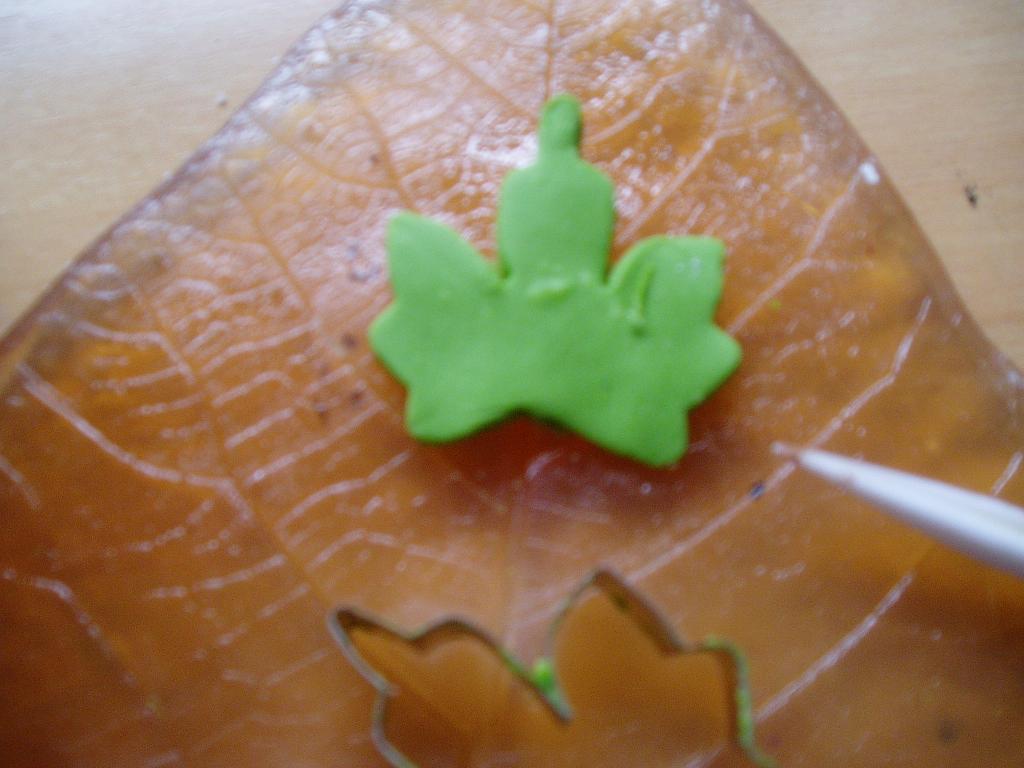 amigos lo primero se coge un trozo de masa,se le hecha oleo verde , se va amasando asta que cogo todo el color verde,despues se chafa y se deja no mui gordo, se le pone el molde y se retira la restante masa se saca del molde y se pone en el tallador de hojas ,chafandola un poco para coger las bretas del molde ,se da la vuelta y se le introduce un trozo de alambre con cola por detras, se pone en una huevera para coger forma uniformal o entrozos de algo curvante.Espero haberme explicado bien saludos a tod@s,,,,,,,,,,
