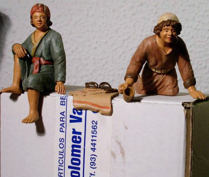 Dando una vuelta por el Foro y recopilando algunas imágenes de figuras diferentes de los Colomer, encontré otra variante del niño descalzo y la versión popular que aún no estaban incluidas en el hilo. Además, hallé una fotografía del conjunto completo del nacimiento junto con los pastores, lo que permite apreciar mejor la coherencia y el detalle de estas piezas.