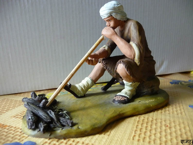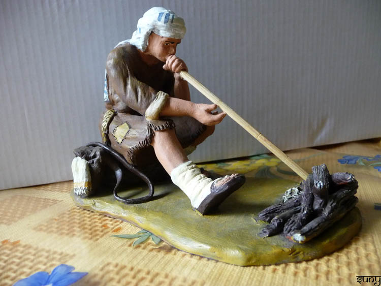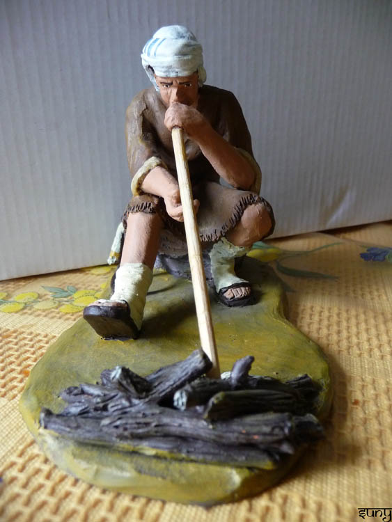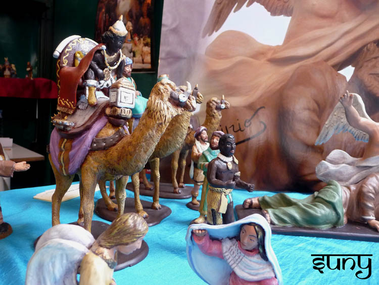 Allí se pueden ver muchas de sus producciones, en 8 cm, 16 cm, 24 cm, etc. Las figuras de pequeño tamaño son una delicia, mi huida a Egipto es muy bonita; esa cabalgata, la presentación, el pastor soplador...son figuras distintas a otros artesanos, más naif, con un estilo muy definido,....amigo Higinio, a seguir..poco a poco