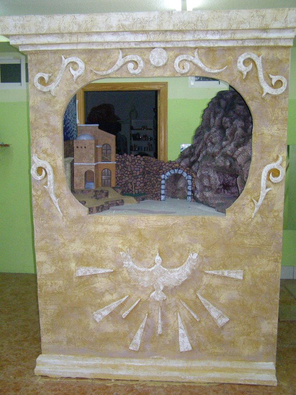 Título: cajetín en donde se colocarán las piezas de este año, esta hecho de listones de madera y corcho