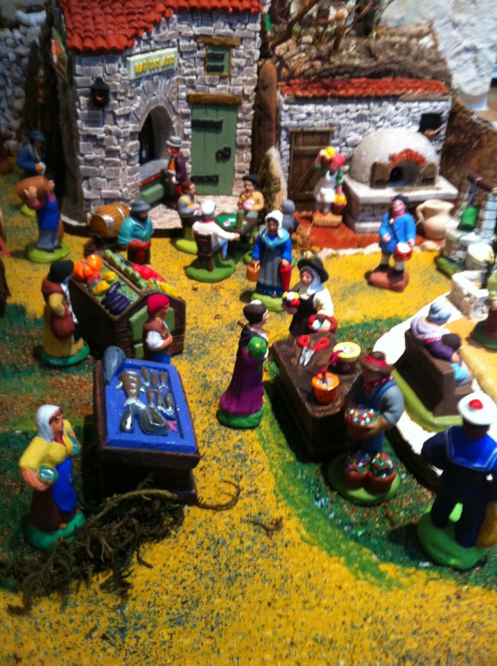 Título: PLaza del pueblo con mercadillo, panaderia y bar
