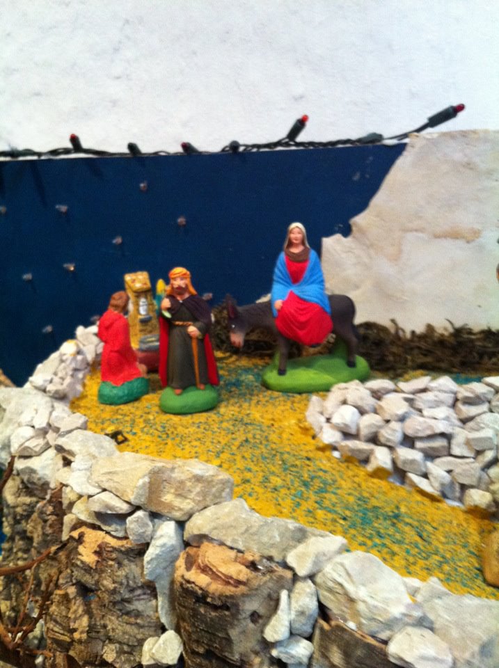 Título: Pidiendo hospitalidad. San Jose y la Virgen son los unicos personajes vestidos de hebreos. El Belen se suele montar el domingo de Adviento. La pareja va avanzando un poco cada dia para llegar al Portal en la Nochebuena.