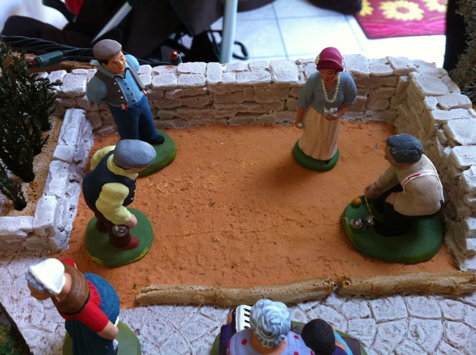 Título: Partida de petanca, deporte tipico del Sur. Si os fijais, en la izquierda se puede ver una figura levantandose la falda, enseñando su trasero. Se llama Fanny y la tradicion quiere que el perdedor le bese el trasero si no ha marcado ningun punto ("estar Fanny").